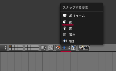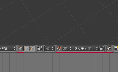 - 左下あたりのオブジェクトモード、編集モードなどの部分が